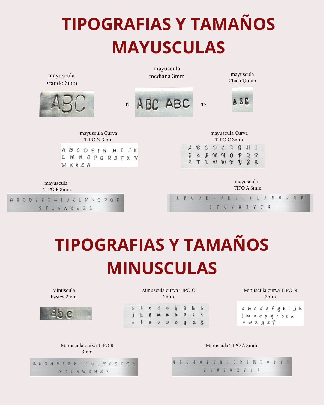 Podemos grabar letra mayuscula (tamaño grande, mediano y chico) si es solo una inicial pueden elegirlo, si es una palabra/frase pueden colocar el deseado y en caso que entre se hara con ese tamaño, de lo contrario se realiza con el tamaño que permita ese grabado. En caso de no elegir tamaño, se realiza a criterio.