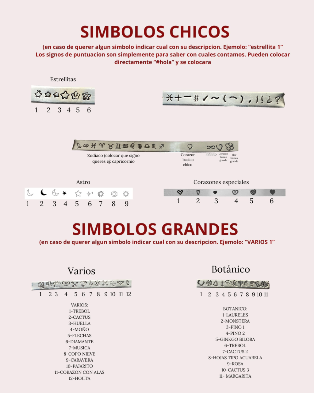 Se puede grabar inicial o numero. Signos.PUEDEN VER TIPOGRAFIA Y SIMBOLOS EN EL APARTADO DE INFO PERSONALIZADOS